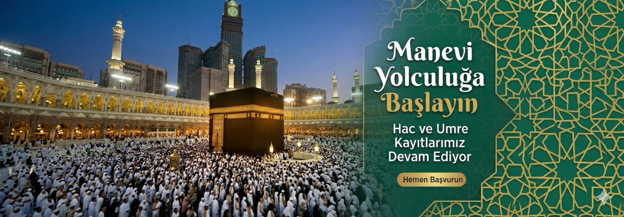 Hac ve Umre yolculuğunuzun her aşamasında yanınızdayız. Başvuru sürecinden kutsal topraklardaki ibadetlerinize kadar tüm organizasyonu titizlikle planlıyor, huzur ve güven içinde ibadetinizi gerçekleştirmenizi sağlıyoruz.